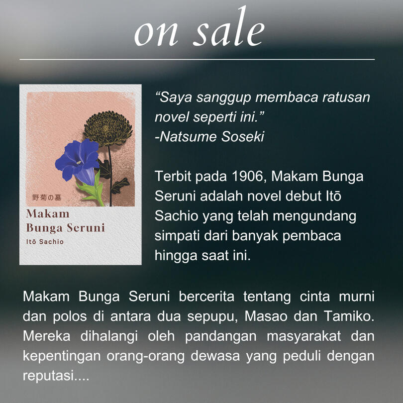 -Natsume SosekiTerbit pada 1906, Makam Bunga Seruni adalah novel debut Itō Sachio yang telah mengundang simpati dari banyak pembaca hingga saat ini.Makam Bunga Seruni bercerita tentang cinta murni dan polos di antara dua sepupu, Masao dan Tamiko. Mereka dihalangi oleh pandangan masyarakat dan kepentingan orang-orang dewasa yang peduli dengan reputasi....